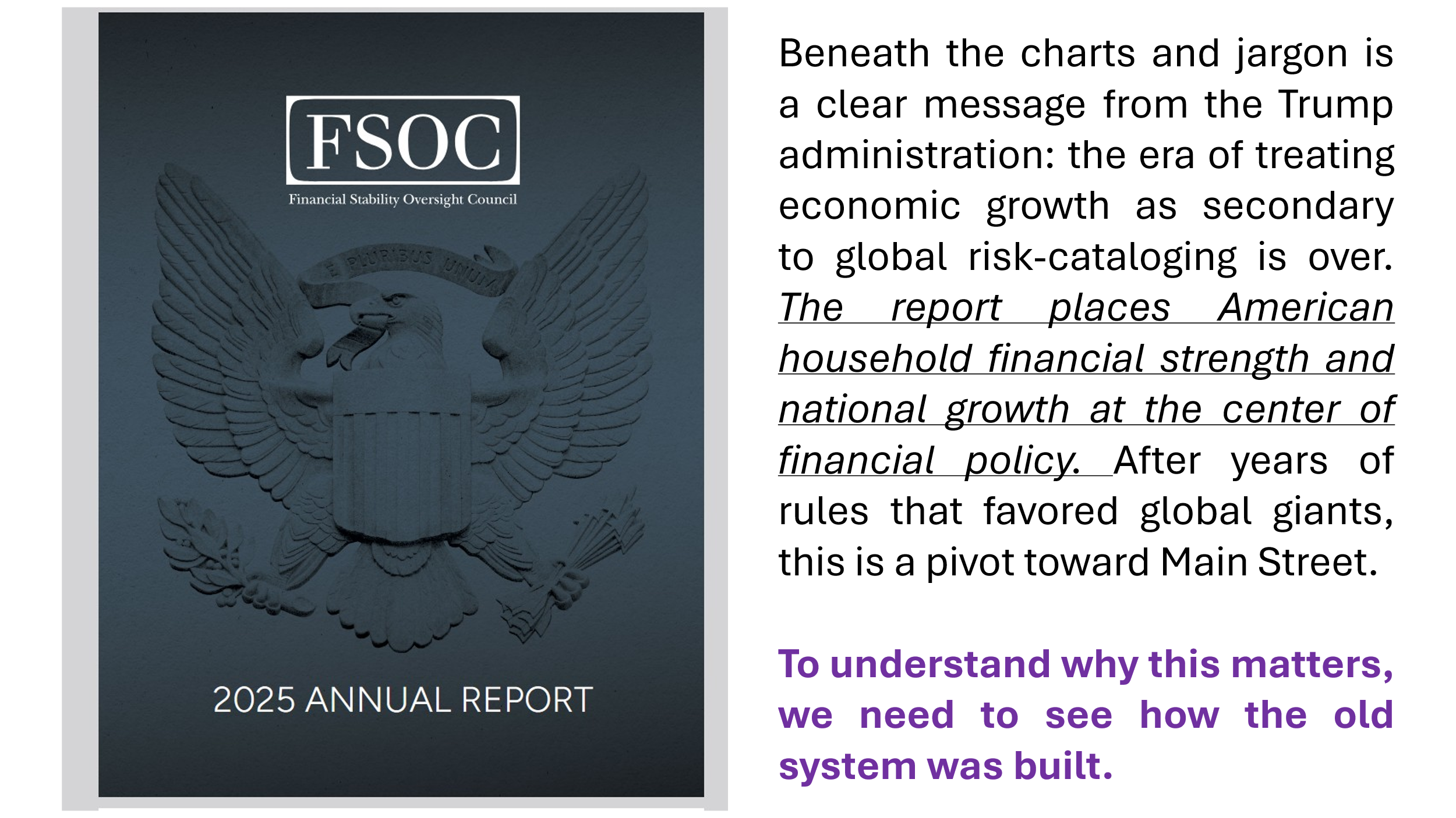 In December 2025, something shifted. The Financial Stability Oversight Council (FSOC), created after the 2008 crash, released a report that looks dry on the surface but signals a break from the old order.