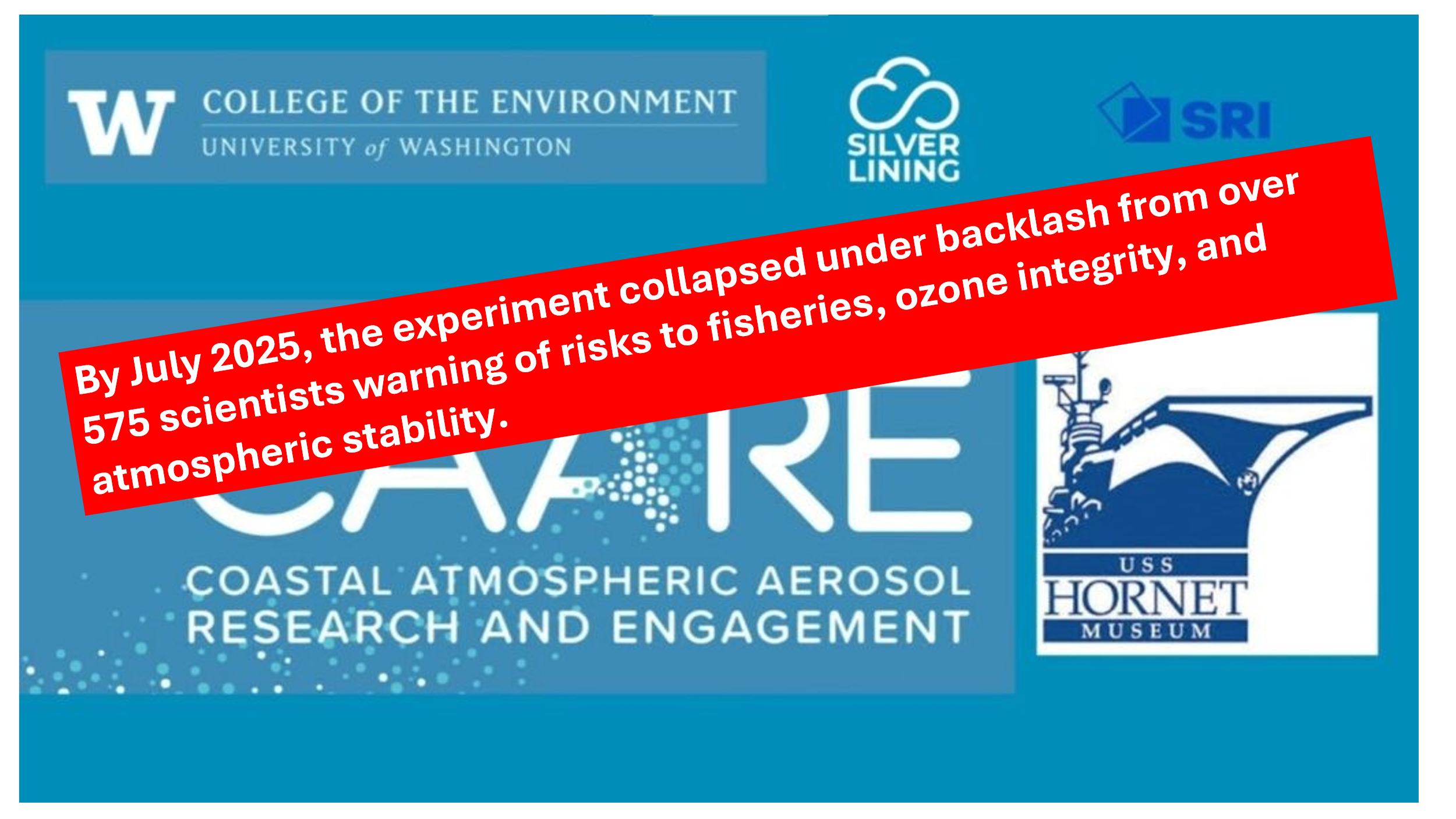 In April 2024, the Alameda salt-spray experiment, conducted from the decommissioned aircraft carrier USS Hornet marked a turning point. Trillions of salt particles were released into the atmosphere to brighten marine clouds and reflect sunlight. The Biden administration denied involvement, but NOAA’s funding trail tells a different story.