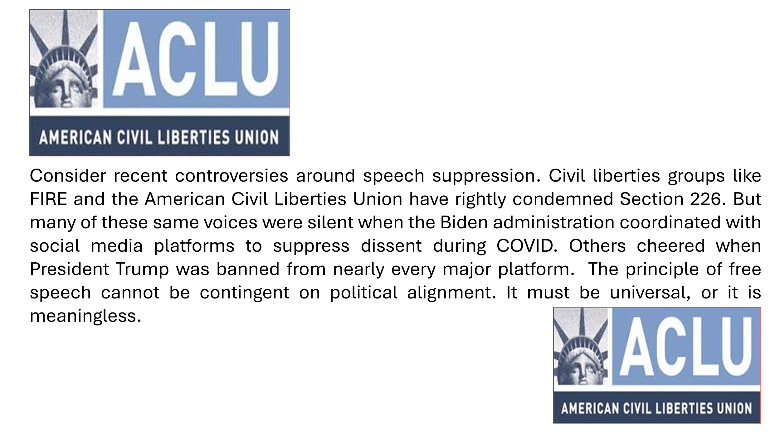 H.R. 5300 is not just another foreign policy bill. It’s a test of whether we still believe in the Constitution as a living guarantee, or merely a branding tool for selective enforcement. Section 226 must be removed. The bill’s other provisions must be scrutinized. And the broader infrastructure of control must be dismantled before it becomes irreversible.